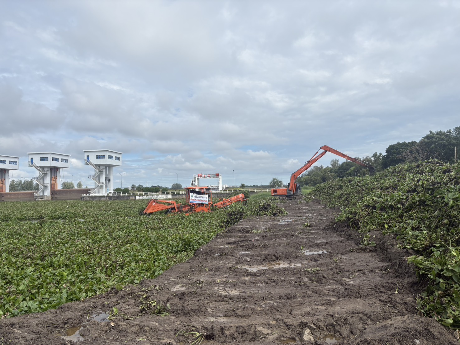 วันศุกร์ที่ 31 ตุลาคม พ.ศ. 2568 นายสาโรจน์ หนูฤทธิ์ ผู้อำนวยการส่วนเครื่องจักรกล สำนักงานชลประทานที่ 15 มอบหมายให้นายปิยะพงศ์ พูลจันทร์ หัวหน้าฝ่ายปฏิบัติการเครื่องจักรกลและยานพาหนะ และเจ้าหน้าที่ที่เกี่ยวข้อง ลงพื้นที่ตรวจสอบบริเวณหน้าประตูระบายน้ำอุทกวิภาชประสิทธิ พบว่ามีวัชพืชและสิ่งกีดขวางทางน้ำเป็นจำนวนมาก ซึ่งส่งผลต่อประสิทธิภาพในการระบายน้ำและการบริหารจัดการน้ำในพื้นที่ จึงได้ดำเนินการสนับสนุนเครื่องจักร – เครื่องมือ ในการกำจัดวัชพืชและสิ่งกีดขวางทางน้ำเพื่อเพิ่มประสิทธิภาพในการบริหารจัดการน้ำให้เป็นไปอย่างมีประสิทธิผล