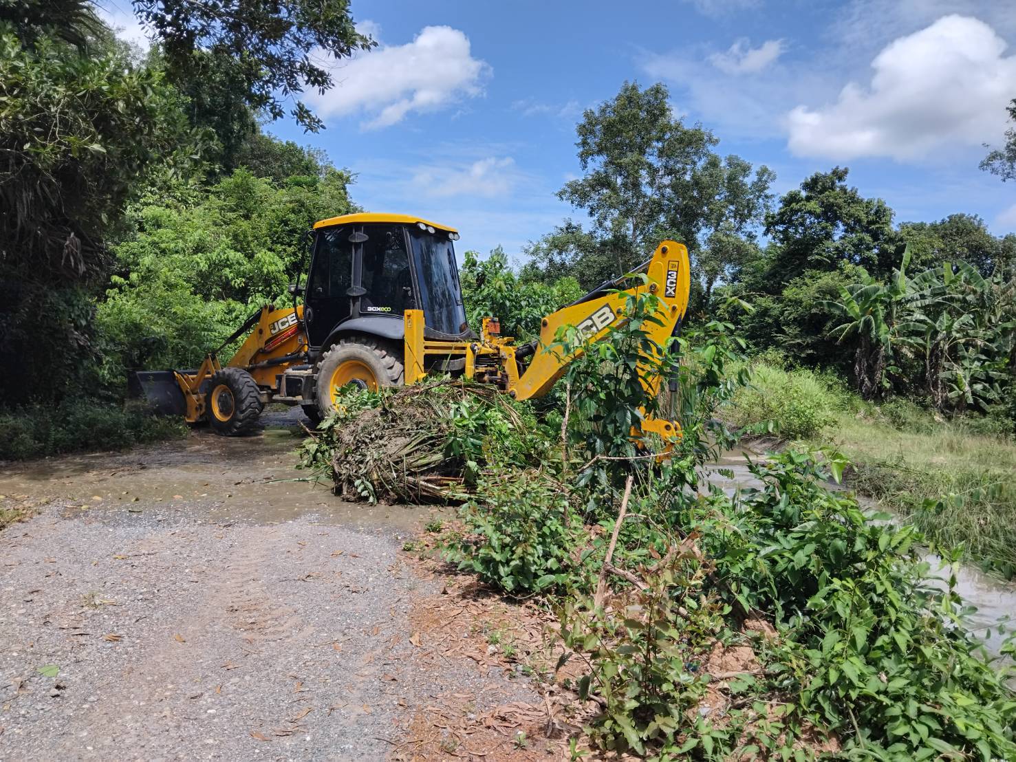 วันจันทร์ที่ 3 พฤศจิกายน พ.ศ. 2568 เวลา 13.30 น. นายพิทักษ์พงษ์ ติ๊บแก้ว ผู้อำนวยการโครงการส่งน้ำและบำรุงรักษาปากพนังบน มอบหมายให้ ฝ่ายช่างกล ลงพื้นที่คลองสาย 2R – 1L ไม้เสียบขยาย นำรถตักหน้าขุดหลัง จำนวน 1 คัน ลงพื้นที่ดำเนินการกำจัดวัชพืชและสิ่งกีดขวางทางน้ำ เพื่อเพิ่มแหล่งน้ำสำรองในการช่วยเหลือเกษตรกร ให้เป็นไปอย่างมีประสิทธิภาพ สามารถส่งน้ำให้เกษตรกรในพื้นที่ได้อย่างเพียงพอและทั่วถึง ณ คลองสาย 2R – 1L ไม้เสียบขยาย ตำบลนางหลง อำเภอชะอวด จังหวัดนครศรีธรรมราช