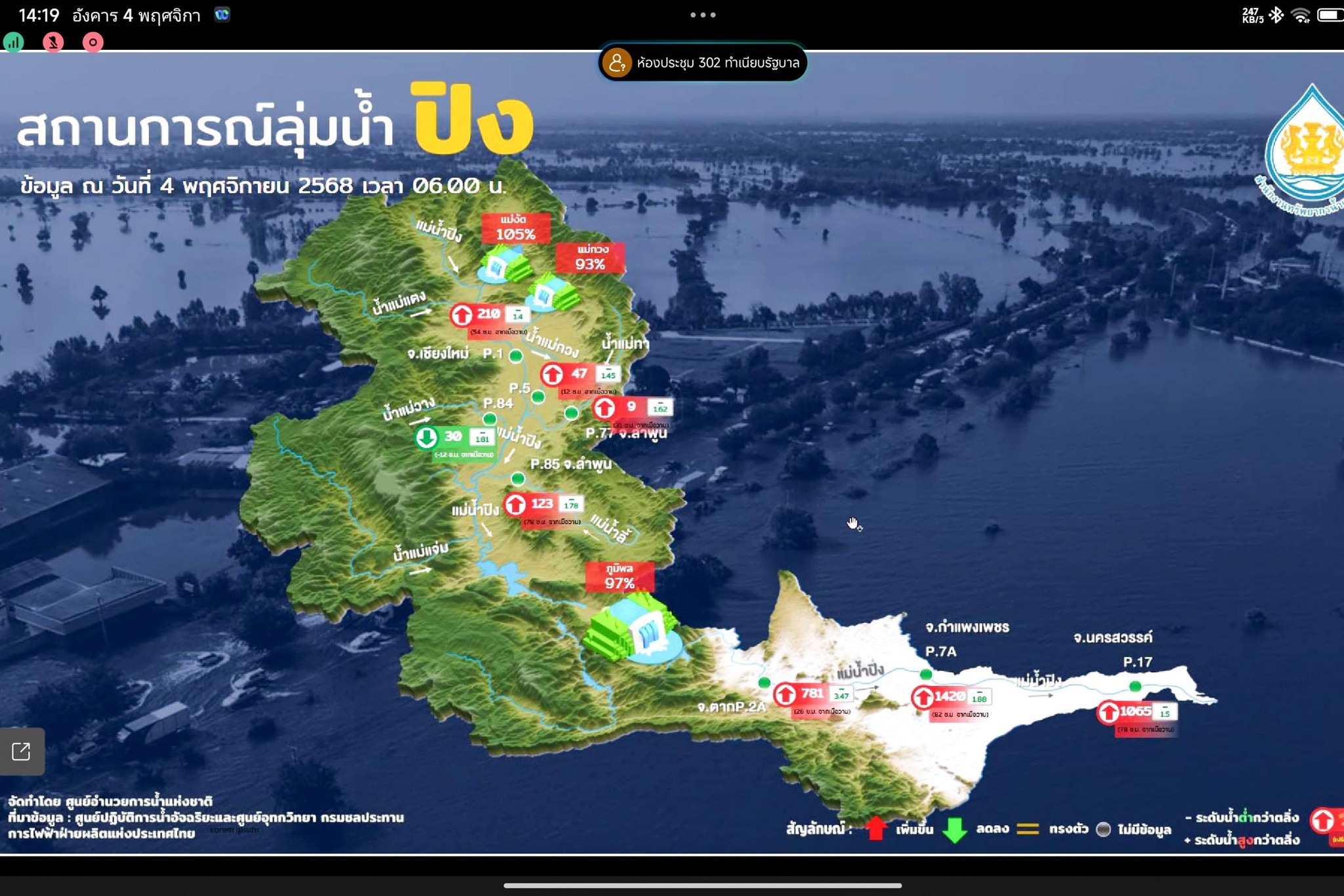 ทั้งนี้ เพื่อร่วมพิจารณารายงานสภาพอากาศ สถานการณ์น้ำ การคาดการณ์ ติดตามสถานการณ์อุทกภัยภาคเหนือ และการเตรียมความพร้อมรับมือสถานการณ์น้ำภาคใต้ และเรื่องอื่น ๆ ให้เป็นไปด้วยความเรียบร้อย
