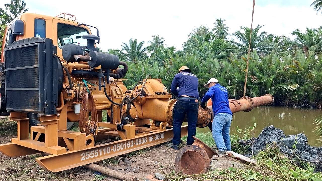 วันพุธที่ 5 พฤศจิกายน พ.ศ. 2568 นายสาโรจน์ หนูฤทธิ์ ผู้อำนวยการส่วนเครื่องจักรกล มอบหมายให้นายปณพงศ์ สาริกะพันธ์ หัวหน้าฝ่ายปฏิบัติการสูบน้ำ ส่วนเครื่องจักรกล และเจ้าหน้าที่ฝ่ายปฏิบัติการสูบน้ำ ดำเนินการติดตั้งเครื่องสูบน้ำ เตรียมความพร้อมรองรับสถานการณ์อุทกภัย ในเขตพื้นที่อำเภอท่าศาลา จุดที่ 1 บ้านนางตรา หมู่ที่ 3 ตำบลท่าศาลา อำเภอท่าศาลา ขนาด 12 นิ้ว จำนวน 1 เครื่อง จุดที่ 2 บ้านบางใบไม้ หมู่ที่ 5 ตำบลท่าศาลา อำเภอท่าศาลา ขนาด 12 นิ้ว จำนวน 1 เครื่อง และจุดที่ 3 บ้านสระบัว หมู่ที่ 6 ตำบลท่าศาลา อำเภอท่าศาลา ขนาด 12 นิ้ว จำนวน 1 เครื่อง รวมติดตั้งทั้งหมด 3 เครื่อง ตามแผนการติดตั้งเครื่องสูบน้ำและเครื่องผลักดันน้ำรับสถานการณ์อุทกภัย ปี 2568