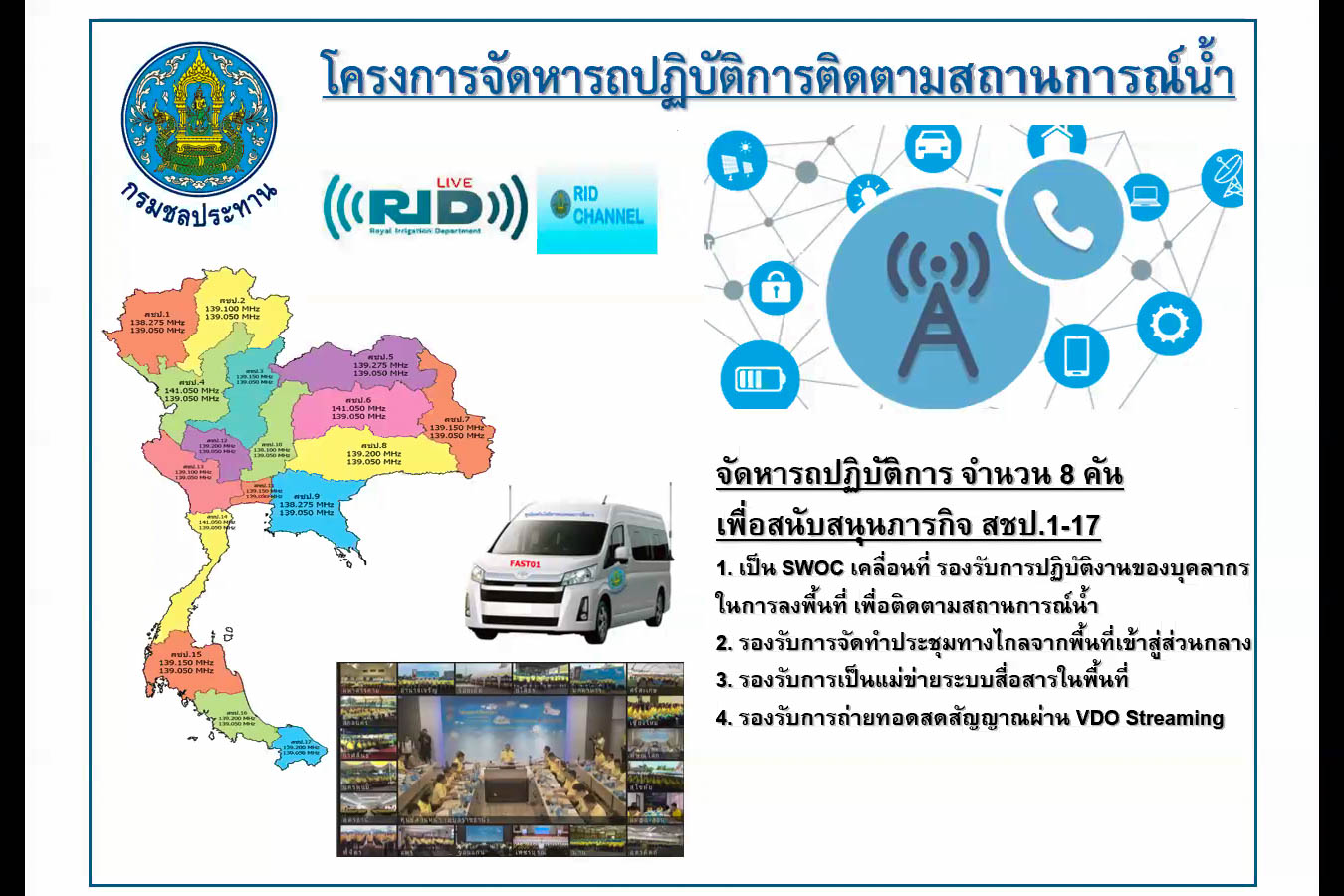 ทั้งนี้ เพื่อร่วมพิจารณาแนวทางการจัดสรรและใช้งานรถปฏิบัติการติดตามสถานการณ์น้ำ ให้เป็นไปด้วยความเรียบร้อย และมีประสิทธิภาพสูงสุด